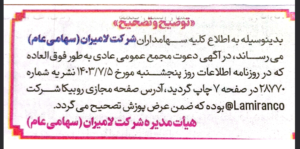 آگهی دعوت به مجمع عمومی عادی به طور فوق العاده